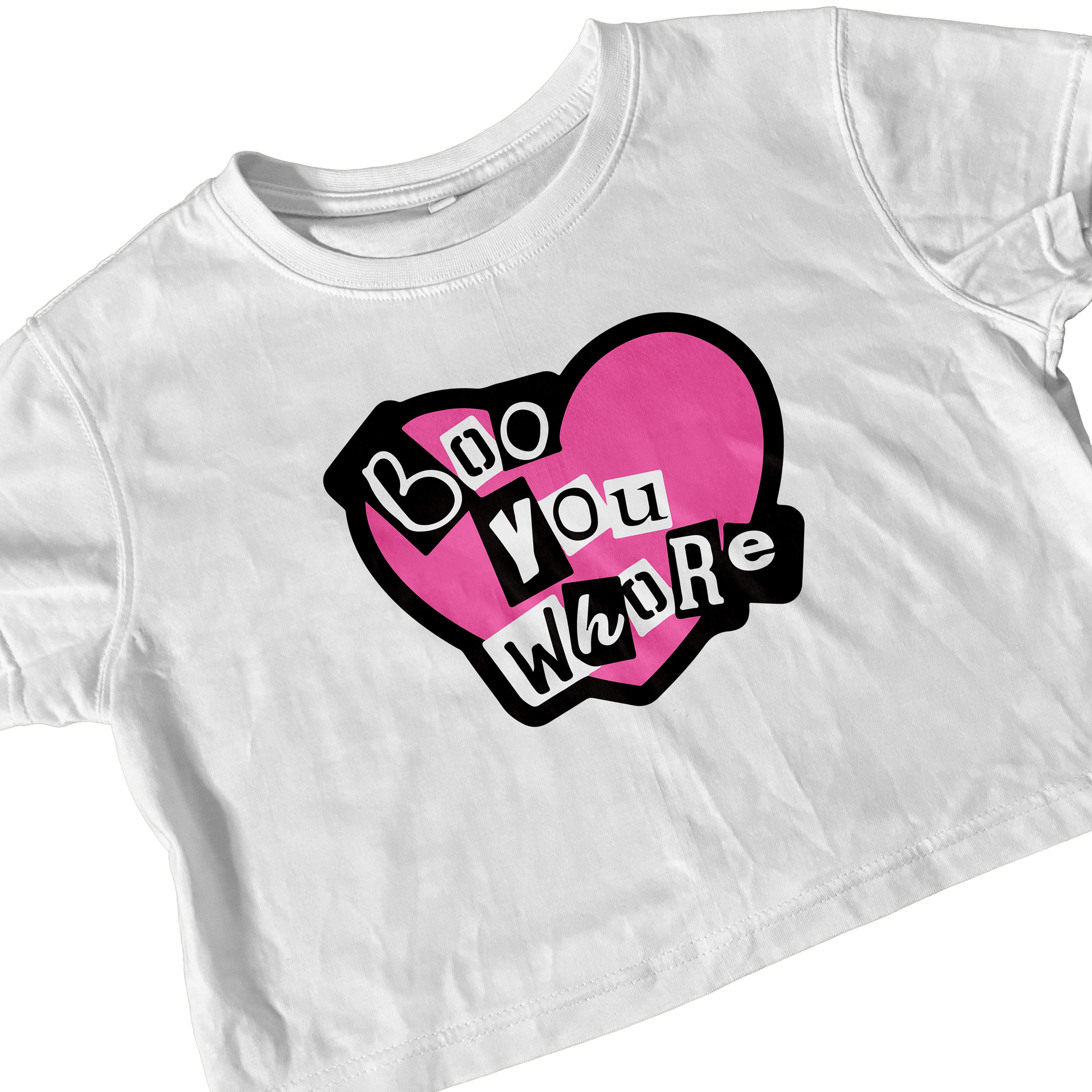 BOO YOU WHORE WHITE CROP TEE