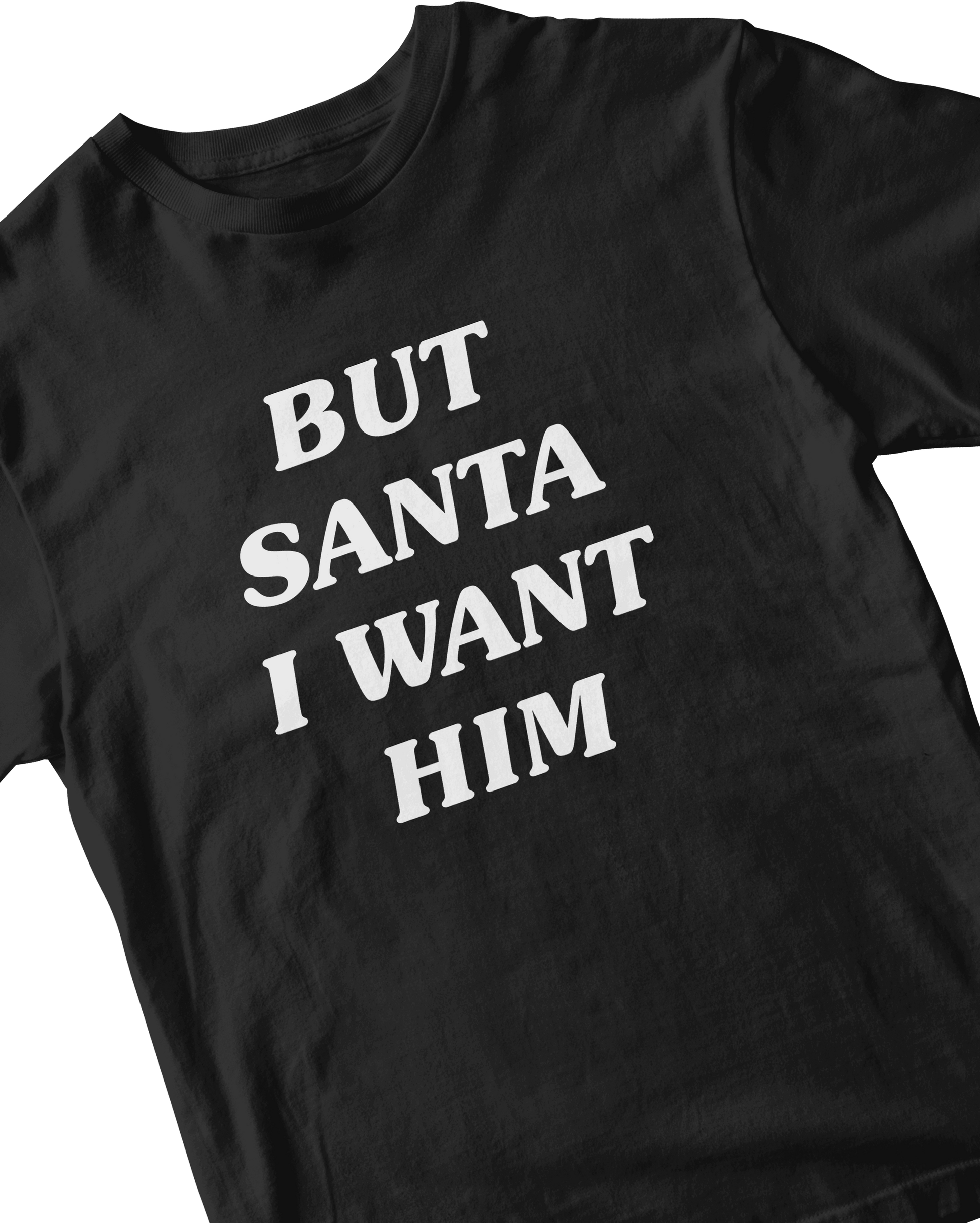 BUT SANTA I WANT HIM BLACK BABY TEE