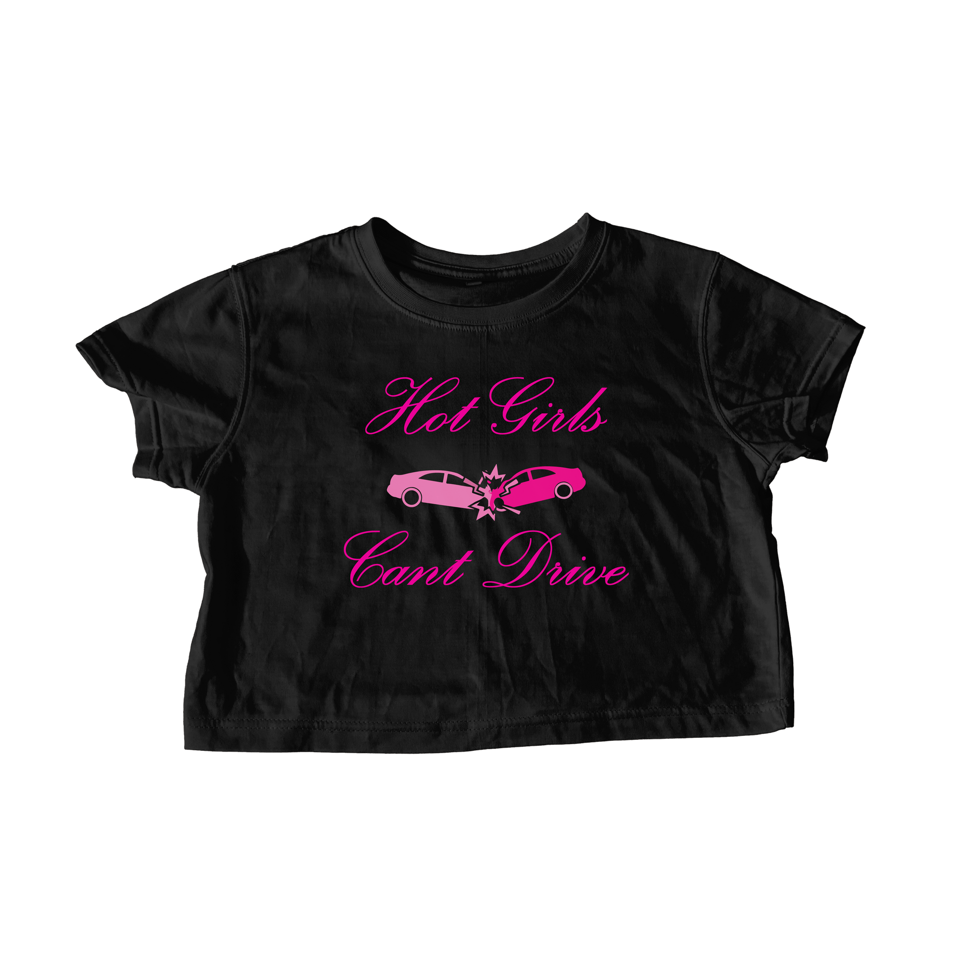 HOT GIRLS CAN’T DRIVE BLACK CROP TEE